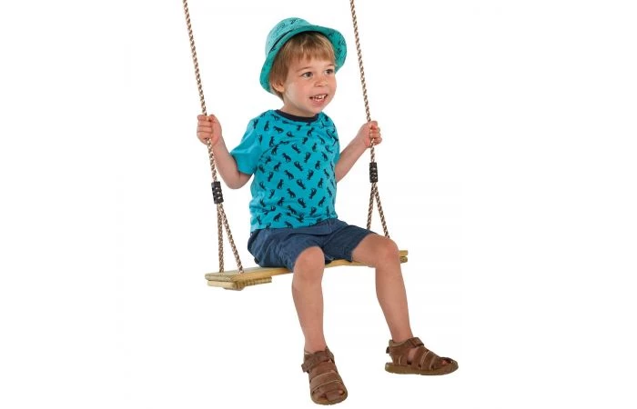 Het hardhouten schommelzitje geproduceerd door KBT is ideaal als onderdeel voor een meer natuurlijk ogend aanbod van speeltoestellen.