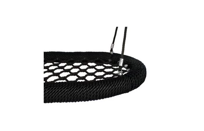 De nestschommel โoval proโ van KBT is een uniek ovaalvormig ontwerp dat verkrijgbaar is in breedte 1200 en 1000 mm. De ophangtouwen zijn vervaardigd in gewapend touw met een roestvrij stalen ketting (ร 6 mm) aan het bovenuiteinde om de ophanglengte aan te passen. De sluitingen zijn vervaardigd in kwaliteitsvol roestvrij staal. Alle bevestigingshulzen zijn vervaardigd in aluminium.