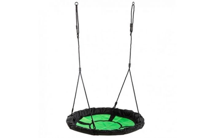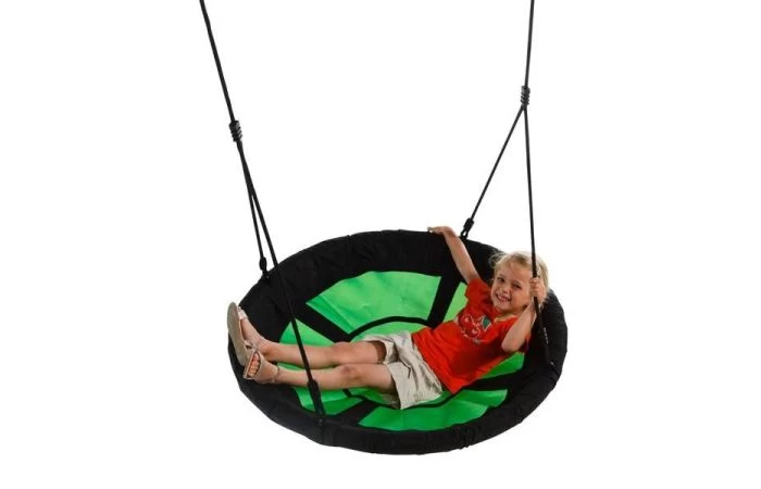 De nestschommel ‘swibee’ van KBT wordt plat verpakt geleverd in een kartonnen doos en kan eenvoudig gemonteerd worden. De zwarte gevlochten touwen geven de nestschommel een mooi uitzicht en zijn eenvoudig in lengte verstelbaar. Het stalen frame is volledig omhuld met foam om een zachte impact te verzekeren. Het stoffen materiaal is sterk maar ook aangenaam om aan te raken. Water kan eenvoudig wegvloeien. De ringen en stelachten zijn vervaardigd in gegalvaniseerd staal. De lassen op de touwen bestaan uit zwart PP.