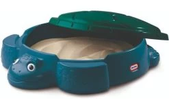Little Tikes Zandbak Schildpad Groen Turtle Go Green. Deze stevige Turtle zandbak is de nieuwste variant in de zandbak collectie van Little Tikes. De schildpad zandbak heeft een blauw met groene kleurstelling. Doordat de zandbak is voorzien van een deksel blijft het zand droog en schoon. De inhoud van deze schildpad zandbak is 70 kilo. Verder is deze kinderzandbak in de vorm van een schildpad voorzien van een brede rand zodat je er gemakkelijk op kunt zitten.