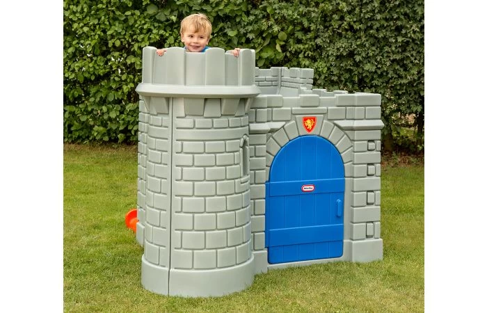 Speelhuisje in vorm van echt kasteel met klimtoren, glijbaan en open haard! Robuuste kwaliteit.