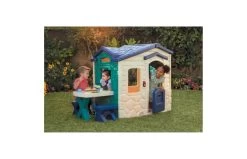 Little Tikes Speelhuis Picknick in jungle kleurstelling. De kok kan zijn maaltijden door het raam serveren aan de gasten aan de picknicktafel! Inclusief keuken met pitten, oven, kastjes en een haard, en een deur, brievenbus en een 19-delige accessoireset. De deurbel maakt 6 geluidjes