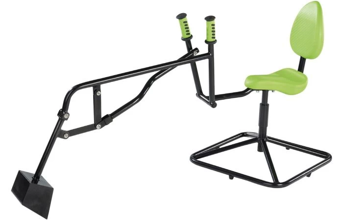 Stoere zandgraver met kunststof zitting en rugleuning. Makkelijk schoon te maken. Deze solide graafmachine is geschikt voor in de zandbak. Je kan ermee 360 graden draaien. Te bedienen door middel van 2 hendels met kunststof handvatten.