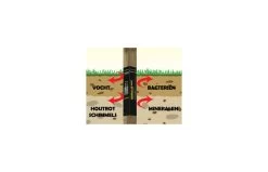Elke douglas schommel wat de grond in gaat wordt geleverd met een Postsaver. Tijdens het plaatsen wordt 5 cm van de Postsaver boven de grond gelaten en ongeveer 65 cm onder de grond. Doordat de sleeve het vochtgehalte ruim onder de 25% reduceert zullen de organismen welke houtrot veroorzaken niet kunnen leven waardoor de paal in optimale staat blijft.