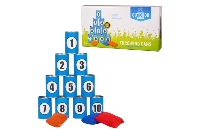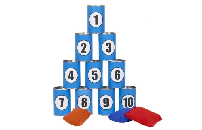 - Inhoud: 12 blikjes (6 x 10 cm) en 3 werpzakjes.