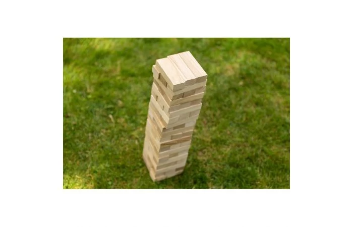 Bouw de toren zo hoog mogelijk en laat de blokken niet vallen! De grote robuuste blokken zijn vervaardigd van hout. Geschikt voor binnen en buiten. Inhoud: 60 houten blokken ( 12 x 4 x 2,5 cm). Geschikt voor kinderen vanaf 5 jaar.