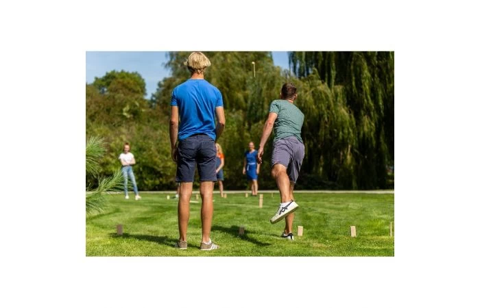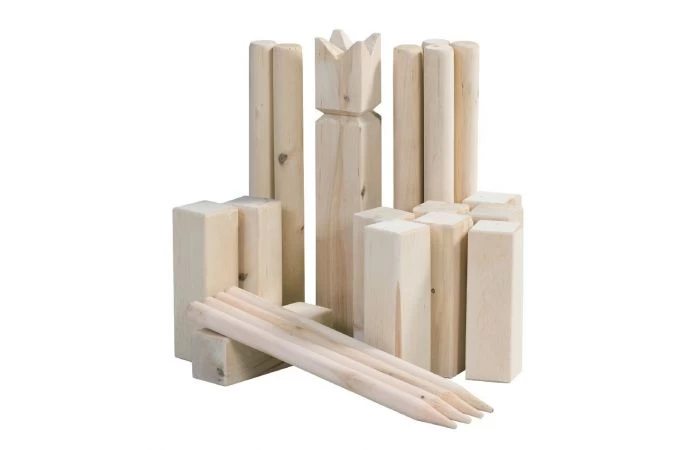 - Afmetingen: 10 basistorens 4,5 x 4,5 x 15 cm, 6 werpstokken 3,3 x 3,3 x 31 cm, 4 markeerstokken 1,8 x 1,8 x 30 cm, 1 koning 5,3 x 5,3 x 31 cm.