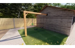 - Het touw van de zitting is 5 mm dik PE, stevig bevestigd aan stalen buizen van 1.1 mm dik staal met een diameter van 25 mm, beschermd met zwart foam.