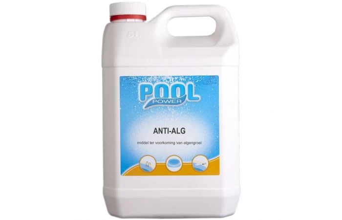 Pool Power anti-alg, voor het bestrijden en vermijden van algenvorming. Fles van 5 liter.