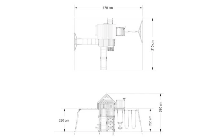 De Skyfort II is gemaakt van 100% cederhout. Met een kleine, strakke noesten structuur, zal je hout minder snel kleine scheurtjes ontwikkelen die voortkomen uit de noesten. Uit laboratoriumtests is gebleken dat ons duurzame cederhout bestand is tegen weersinvloeden en zeer goed bestand is tegen houtrot. Al het hout is behandeld met een watergedragen beits voor een glad en helder uiterlijk, evenals op maat gezaagd en gestempeld met het onderdeelnummer om het bouwproces te versnellen. Het kan nodig zijn om een onderdeel voor te boren. Onze exclusieve Safe-T-Fuse hardware maakt de montage eenvoudig en veilig. De gelamineerde schommel balk is sterk gebouwd, met stalen klembeugels om ervoor te zorgen dat het schommelen altijd veilig is.
