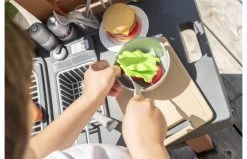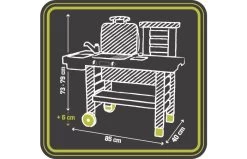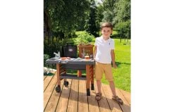 Je kan deze buitenkeuken in hoogte verstellen en aanpassen aan de lengte van je kind: zo heeft het er nog langer plezier van! De legplanken en het plateau onder het werkblad bieden plaats aan de vele accessoires die bij de keuken horen.