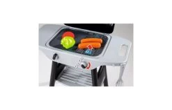 Het oppervlak van de grill is gescheiden in een rek en een bord om verschillende gerechten te bereiden. Bij het draaien aan de draaiknop springen de kunststof vlammen door het rek en creëren zo een nog authentiekere barbecuesfeer. Dankzij de twee wielen is deze stabiele grill bijzonder mobiel en handzaam. Til gewoon de bovenkant op om te controleren of het eten klaar is om te serveren. Kinderen vinden voldoende ruimte voor hun grillaccessoires op de onderste opbergplanken.
