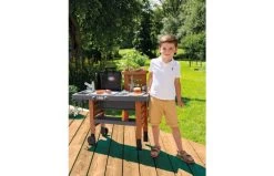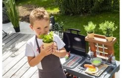 Met de grote zomerkeuken kun je mama en papa nadoen en grote barbecues organiseren! Samengesteld uit een plancha, een grill met intrekbare vlammen en een friteuse, zal deze keuken u toelaten om goede maaltijden te bereiden! Ook de afwas doe je dankzij de spoelbak die is voorzien van een waterpomp. Een veertigtal accessoires zijn inbegrepen, waaronder etenswaren (friet, hamburger, kebabs, salade …) en gebruiksvoorwerpen (tangen, aanstekers, bestek, borden, snijplank …). Je kunt zelfs de kleine potjes gebruiken om echte kruiden te planten.