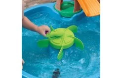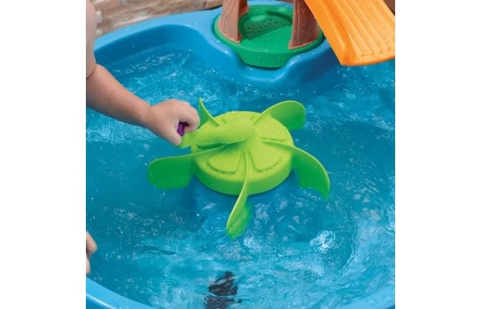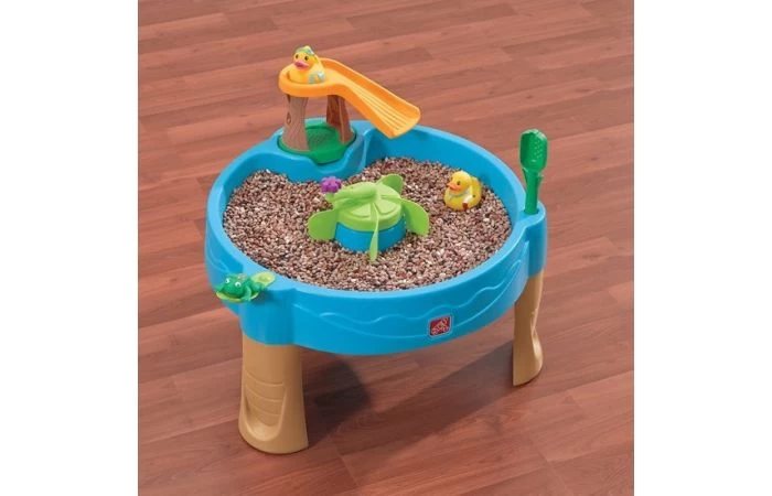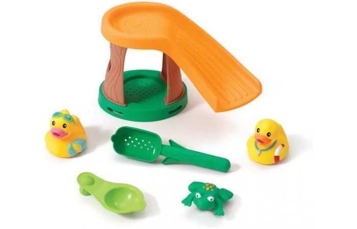 Water spel fascineert niet alleen kleintjes, maar stimuleert ook de zintuigelijke vaardigheden als kinderen de rubberen eenden en kikker in het water spatten. Peuters kunnen ook om beurten het waterrad gebruiken voor nog meer plezier. Voor kleuters is deze watertafel met vijver-thema geweldig!