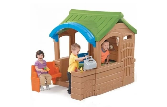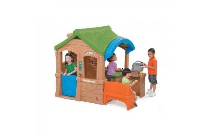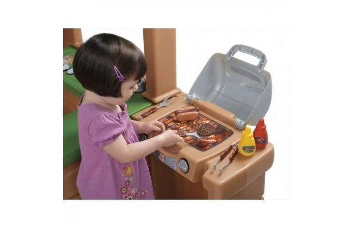 Dit speelhuis Gather and Grill van Step2 is met de uitgebreide ruimte perfect voor uw kinderen om te barbecueën en met hun vriendjes te genieten. Het speelhuis heeft een ingebouwde barbecue en een 2-zitsbankje op het buitenterras van het speeltoestel, een elektronische deurbel met realistisch belgeluid en een ingebouwde keuken met wastafel.
