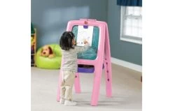 Tweezijdige ezel met aan de ene kant een magnetisch whiteboard en aan de andere kant een krijtbord. Grote paperclip aan elke kant om tekeningen vast te maken Grote opbergruimte aan de onderkant van de borden Snel in elkaar gezet en opgeklapt Inclusief 77 magnetische letters, nummers en tekens