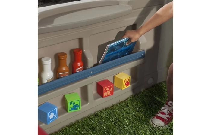 - Â De kleintjes kunnen de ingebouwde gootsteen, de zwenkbare kraan en het buitenterras gebruiken om een fantasierijke middag door te brengen!