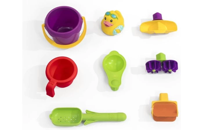 - 8-delige accessoire-set bestaande uit een schepje, wateremmer en rubberen eend