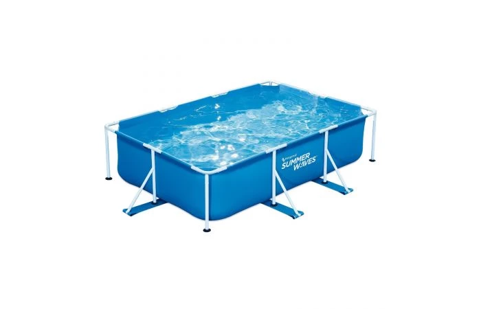Summer Waves Zwembad Small Frame 300 x 200 x 75 cm. Perfect zwembad voor kleinere buitenruimtes en eenvoudig te monteren. Inhoud: Afmeting zwembad: 300 x 200 x 75 cm, Watercapaciteit: 3.520 liter (80% gevuld), Klaar voor water in 30 minuten.