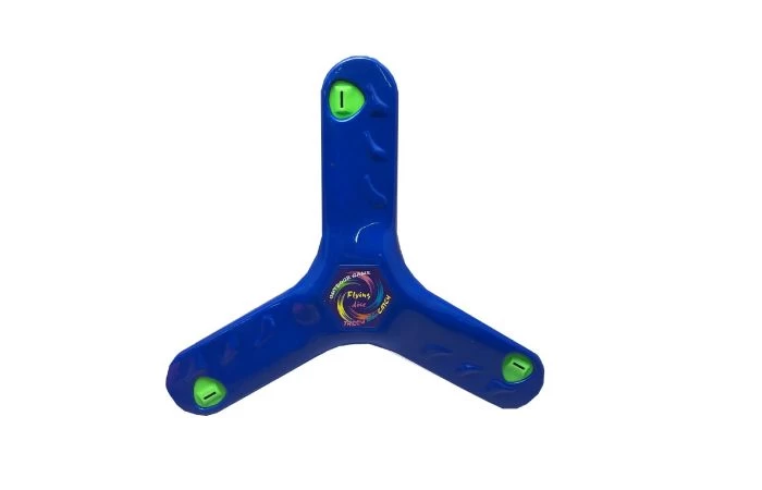 Summertime Tri boomerang. Een superleuke sportieve activiteit voor het strand of in het park! Door de korte vlucht en het compacte formaat van deze boomerang is dit een zeer gemakkelijke boemerang om te gebruiken als er geen wind is. Afmetingen: 34,5 x 34,5 x 2,5 cm. Gewicht: 90 gram. Wordt in de kleuren blauw en rood geleverd met kopkaart. Geschikt voor kinderen vanaf 5 jaar.