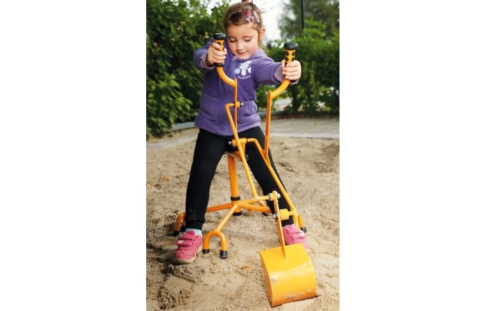 Stoere zandgraver met kunststof zitting en rugleuning. Makkelijk schoon te maken.