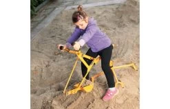 Deze solide graafmachine is geschikt voor in de zandbak. Kinderen kunnen de hele zandbak rondgraven met deze robuuste zandgraver door zijn 360 graden draaistoel. Zet je schrap met je voeten en graven maar!